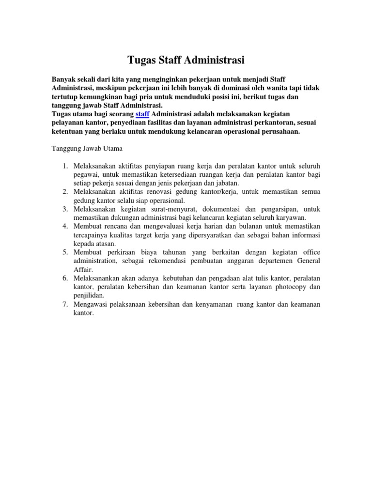 Bidang pekerjaan adalah sangat luas pada hari ini daripada sekecil-kecil upah sehinggalah kepada sebesar-besar upah atau dibayar gaji. Untuk itu menjadi staf admin harus punya komunikasi yang baik dan harus bisa menjaga hubungan yang baik antar rekan kerja. Dos Donts Saat Membuat CV Staff Admin.